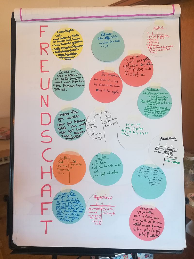 Im Projekt geht es darum Unsicherheiten und Ängste gegenüber andere Religionen abzubauen in dem man in einem geschüztem Rahmen das Thema anspricht aber auch spielerisch und kreativ in dem man in gemischten Gruppen Torten kreirt, die die Freundchaft represäntieren sollen. Dafür gab es 3 Projektstagen: Tag 1: die Jugendlichen konnten sich durch Spiele kennenlernen und anonymisierte Fragen über Unsicherheiten gegenüber andere Religionen aufschreiben. Eine Einführung in die Tortenwelt wurde vorgestellt und die jugendlichen wurden per los in 4 Gruppen aufgeteilt. Tag 2: Jugendlichen bearbeiteten Texte über die Freunschaft aus der Bibel und aus dem Koran (bzw. Sunna), am dem Tag wurden auch die Cremes vorbereitet aber auch die verschiedene Motiven aus Fondant, die auf der Torten dann kamen. Tag 3: Am Abschlusstag wurden die Familien der Jugendlichen zum Kaffee und Torten Essen eigeladen. Der Imam zitierte ein paar Versen aus dem Koran,die von einer Jugendliche auf Deutsch dann vorgelesen wurden und ein anderer las aus der Bibel. Durch das Projekt "Freundschaft, die Schmeckt" konnten 17 Jugendlichen zwischen 14 und 17 Jahren die katholische und islamiche Religion kennenlernen,bzw. die Bedeutung der Freundschfat in den jewiligen Religionen. Neue Freundschaften wurden geknüpft und dank diese Jugendlichen,konnten die Eltern auch was dazulernen und eine andere Religion näher kommen. Das Ziel dieses Projektes war zu zeigen das Menschen mehr Gemeinsamkeiten als Unterschiede haben.