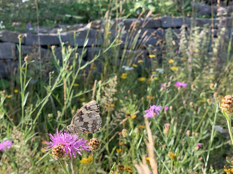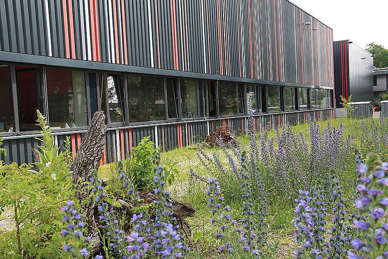 Heideflächen mit hoher Pflanzen- und Insektenvielfalt waren in der Region Augsburg früher weit verbreitet. Sie sind auf ca. zwei Prozent geschrumpft. Eine reine Rasenfläche – um das Unternehmensgebäude – wurde deshalb in einen Magerrasen-/Heide-Standort umgewandelt. Die Ziele dieser Maßnahme sind die Schaffung eines regional typischen und wertvollen Naturraums für Vögel, Kleintiere, Pflanzen, Schmetterlinge und Insekten. Das Projekt soll Pflanzen und Tieren einen „Trittstein“ bieten, die im Sheridanpark noch zu Hause sind, aber durch Verdichtung der Bebauung ihren Lebensraum verlieren. Es soll außerdem ein Wanderkorridor geschaffen werden: Das umgestaltete Gelände schließt an eine Grünzone an und vergrößert den Korridor. Durch aktives Kommunizieren soll das Projekt Verständnis für ungewöhnliche Gartenanlagen (z.B. verblühte Pflanzen) schaffen. 2017 wurden 40 Meter Trockenmauer mit Kleintierhöhlen angelegt. Die Randbereiche der Fläche wurden modelliert und bieten Verstecke für Kleintiere. Zudem wurden Baumwurzeln bzw. Totholz ausgebracht, die Insekten und Kleinlebewesen eine Heimat bieten. Als Vogel- und Kleintiertränke dient außerdem die angelegte Wasserfläche. Außerdem wurde Heidesamen aus der Königsbrunner Heide in Zusammenarbeit mit dem Landschaftspflegeverband Augsburg ausgesät. Zur Aufklärung informiert ein Schild vor Ort. 2018 wurden dann zusätzlich autochthone, fruchttragende Gehölze gesetzt, deren Früchte als Winterfutter dienen.