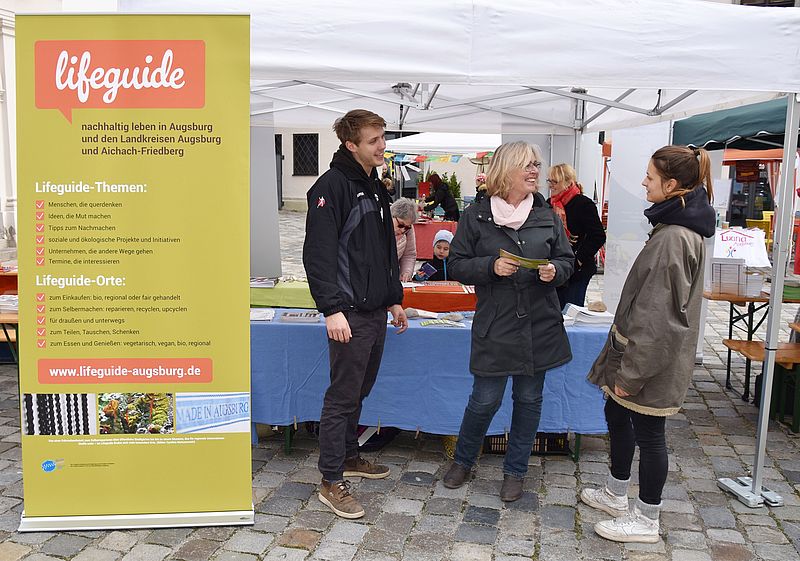 Der Lifeguide Region Augsburg e. V. gibt den Menschen in Augsburg und der Region Informationen und Inspirationen, wie sie einen ökologisch, ökonomisch, sozial und kulturell nachhaltigeren Lebensstil pflegen können. Außerdem unterstützt der Lifeguide Menschen, Projekte und Initiativen, die bereits nachhaltig agieren. Online-Magazin: Das Internetportal „Lifeguide Augsburg“ stellt seit 2016 über 350 nachhaltige Orte vor: Vom Bio-Bäcker über Hofläden bis zu Urban-Gardening-Projekten oder Fahrradwerkstätten. Dazu kommt der Magazinteil mit Hintergrundwissen, wie Tipps zu plastikfreiem Leben, nachhaltigem Reisen oder fairem Shoppen. Ein Herzstück des Lifeguide sind die „Nachhaltigen Gesichter Augsburgs“ - Portraits von Menschen, die die Region Augsburg nachhaltiger machen. Reiseführer und Stadtrundgang: Der Lifeguide hat 2018 den ersten nachhaltigen Stadtführer für Augsburg herausgegeben. Mit fünf Stadtrundgängen, Tipps und Interviews zeigt das Buch „Lifeguide Augsburg – nachhaltig unterwegs in Stadt und Region“ die modere, nachhaltige Seite der historischen Stadt Augsburg. Anfang 2019 etablierte der Lifeguide - in Zusammenarbeit mit der Regio Tourismus Augsburg GmbH - einen nachhaltigen Stadtrundgang. Der Lifeguide ist unabhängig, werbefrei und Teil der Augsburger Lokalen Agenda 21. Die Redaktion funktioniert durch viel ehrenamtliches Engagement und wird mit Hilfe von Gastautorinnen und Gastautoren und 10-15 Stunden bezahlter Arbeit in der Woche gestemmt.