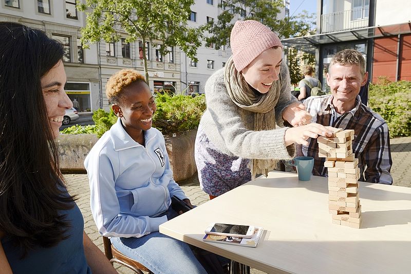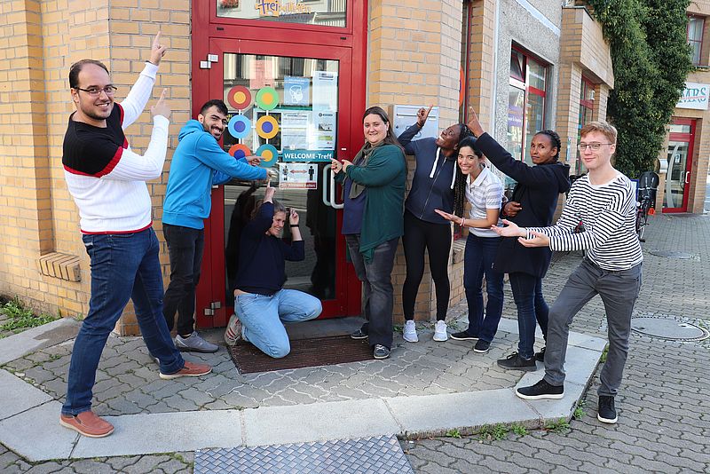 Der WELCOME-Treff ist ein offener Begegnungsort für Engagierte und Menschen mit Migrationsgeschichte. Die Integration und Teilhabe aller, die Förderung von Begegnung, Engagement und gegenseitige Unterstützung stehen hier im Mittelpunkt. Er liegt sehr zentral, in unmittelbarer Nähe zur Uni. Nicht weit davon entfernt sind auch die Jüdische Gemeinde und der Kiez-Döner, die am 09. Oktober 2019 zur Zielscheibe des Halle-Attentäters wurden. Im WELCOME Treff können Engagierte Ideen und Hobbies einbringen und Angebote gemeinsam weiterentwickeln. Er bringt Zugewanderte und Menschen aus der Nachbarschaft zusammen. Sie üben zusammen Deutsch, tauschen Pflanzen und Kleidung und kochen und nähen. Und nach der Formularhilfe oder der Unterstützung am Computer wird Kaffee getrunken, Sport gemacht oder die Nachbarschaft entdeckt. Der WELCOME Treff hat etwa 30 Stunden pro Woche mit Unterstützung von acht Bundesfreiwilligen geöffnet. Der WELCOME-Treff ist gut vernetzt und arbeitet mit vielen Initiativen, Vereinen und Trägern der Migrationsarbeit eng zusammen. Viele Initiativen haben in den vergangen sechs Jahren dort einen Ort für Angebote der Begegnung, des Austausches oder der Wissensvermittlung gefunden. Die Unterstützung beim Ankommen in einer neuen Gesellschaft, das Kennenlernen des neuen Landes mit kulturellen Unterschieden braucht Orte, Zeit und Begegnungen. Der WELCOME-Treff strahlt ein herzliches Willkommen aus und bietet Raum für Begegnung, Teilhabe und gegenseitige Unterstützung.