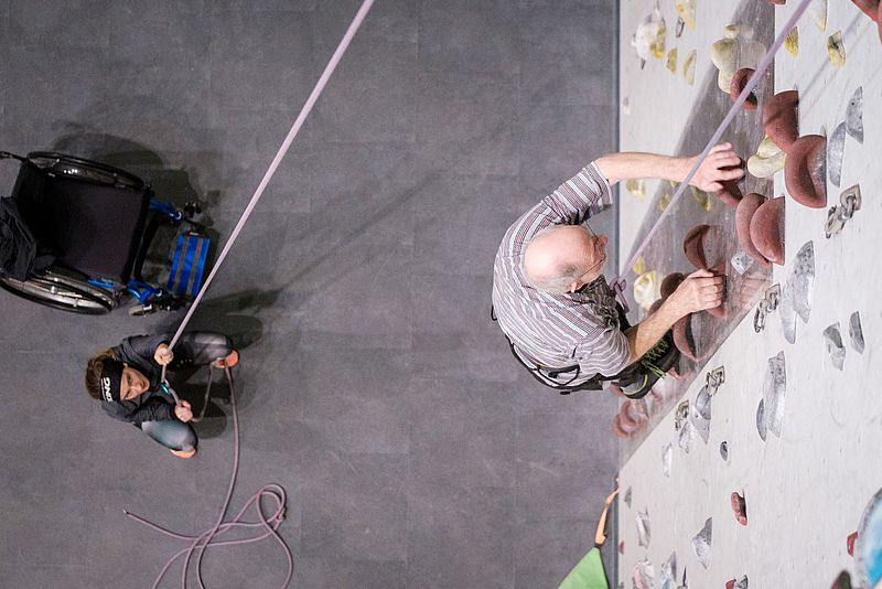 Den Begriff Klettern assoziieren viele Menschen wohl zuerst mit Gefahr, Extremsport, Höhe, Risiko und durchtrainierte, drahtige Sportler. Für manche scheint im ersten Moment eine gewisse Personengruppe ausgeschlossen – Menschen mit Behinderung. Mit dem Projekt hochhinaus wird genau das möglich, was im ersten Moment unmöglich zu sein scheint. Es wird ein Raum geschaffen, so dass alle Kinder und Erwachsene mit einer Behinderung den Klettersport regelmäßig und vor allem nachhaltig ausüben können. Bereits seit 2015 bietet das Projekt hochhinaus unter dem Dach des Deutschen Alpenvereins, Sektion Wiesbaden, Klettern für Personen mit Beeinträchtigung an. Um noch mehr Menschen die Chance zu ermöglichen den Klettersport kennenzulernen und regelmäßig ausüben zu können, it das Ziel vom Projekt hochhinaus auch Organisationen, wie Werkstätte oder Wohnheime anzusprechen.