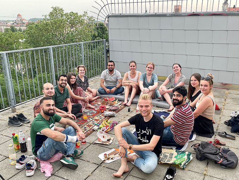Der Salam e. V. ist eine transkulturelle Migrantinnen-/ Migrantenorganisation im Leipziger Osten, die im Oktober 2020 gegründet wurde und in das Vereinsregister als gemeinnützig eingetragen ist. Der Verein setzt sich aus (überwiegend studierenden) Menschen mit und ohne Migrationserfahrung zusammen, die den Bedürfnissen - insbesondere der arabischsprachigen migrantisierten Communities in Leipzig - begegnet. Seine Vision ist es, durch den Aufbau einer Begegnungsstätte Menschen mit und ohne Migrationserfahrung zusammenzubringen. Konkret wird dies durch eine Struktur in vier “Säulen” verwirklicht: Der Verein bietet behördliche Beratungen und Safer Spaces (z. B. für FLINTA*, Männer* und Eltern) an, führt Sprach-Workshops für Arabisch und Deutsch durch und organisiert Freizeitaktivitäten wie Sportturniere, Quiz-Abende und Küfas (“Küche für alle”). Mittlerweile ist er weitreichend in Leipzig vernetzt, führt Kooperationen mit den Maltesern, dem International Rescue Committee und migration_miteinander, ist Mitglied beim Dachverband Sächsischer Migrantenorganisationen und im regen Austausch mit lokalen Akteurinnen und Akteuren. Auf diese Weise wird das Ziel verfolgt, eine transkulturelle Begegnungsstätte zu schaffen. Diese soll Grenzen überwinden, Gemeinschaft stiften und Diversität fördern.