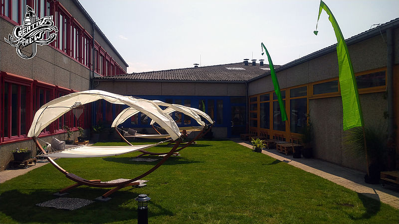 Seit 2016 gibt es die CREATIVE CREW. Sie besteht aus Schülerinnen und Schülern des Stefan-Andres-Schulzentrums und Herrn Gregor Henniger (Lehrer). Was mit 6 Schülerinnen und Schülern begann ist aktuell auf ca. 70 Schülerinnen und Schüler gewachsen. Die Mitglieder der CREATIVE-CREW engagieren sich in Ihrer Freizeit für Mitschülerinnen und Mitschüler und Schule. So auch beim aktuellen Projekt "INNENHOF" - Ruhe und Ausgleich. Ziel war und ist es aus einem vernachlässigten Innenhof einen ganz besonderen Ort zu schaffen, der Kultur, Kunst und Handwerk verbindet, der einen Pausenraum für unsere Schülerinnen und Schüler und Lehrerinnen und Lehrer bietet, der eine grüne Oase (Pflanzenvielfalt) inmitten von Beton und außerdem Ort der Begegnung, des Arbeitens und der Erholung ist (Schulveranstaltungen, Fachgruppen, usw.). Ziel bei diesem Projekt ist aber auch der Prozess, das Zusammenarbeiten im Team, das demokratische Entscheiden, das Planen und die Verwirklichung um künstlerische und handwerkliche Kompetenzen zu erwerben.