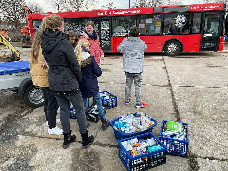 Die Relikids für Obdachlose (12- Jährige Schülerinnen und Schüler) haben durch ihr beispielloses Engagement in der Coronazeit 7 große Spendenkisten mit Hygieneartikeln für den Bus Vierjahreszeiten gesammelt. Der Bus Vierjahreszeiten versorgt 3 mal in der Woche an verschiedenen Orten in Halle die Obdachlosen und sozial schwachen Menschen mit Suppe und Dingen des täglichen Bedarfs. Die Relikids haben in Eigeninitiative eine Brücke zwischen Schule und den Ärmsten der Gesellschaft geschlagen. Regelmäßig kommt es zu weiteren Treffen, Aktionen und Spenden für den Bus. Die Relikids sind seit dem ein fester Bestandteil des großen Engagementteams des Vierjahreszeitenbusses mit seinen vielen freiwilligen Helferinnen und Helfern für Obdachlose und Bedürftige der Stadt Halle/Saale.