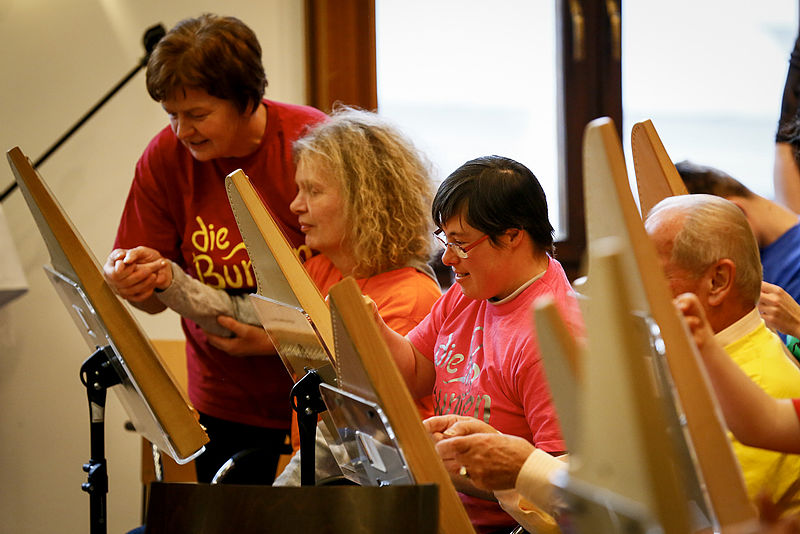 Die Bunten - das sind Musikerinnen und Musiker, die gemeinsam in einem Orchester spielen. Kinder, Jugendliche, Erwachsene sowie Seniorinnen und Senioren mit und ohne Beeinträchtigungen musizieren wöchentlich einmal gemeinsam. Das Orchester wurde im September 2015 gegründet und hat sich inzwischen in drei Konzerten der Öffentlichkeit vorgestellt. Die Bühnenpräsenz und die Ausstrahlung aller Musikerinnen und Musiker wird beim Publikum als sehr eindrucksvoll beschrieben. Die musikalische Leitung und Organisation setzt ein hohes Maß an Engagement voraus: Notenstimmen müssen individuell auf die Musiker angepasst und Instrumente nach Fähigkeiten der einzelnen Personen ausgewählt werden. Betreuungspersonen helfen in jeder Probe mit. Im musikalischen Zusammenspiel sind das "aufeinander hören" sowie die Konzentration wichtige Themen. Dabei unterscheiden sich die Bunten nur wenig von allen anderen Orchestern. Die Fähigkeiten eines jeden Einzelnen in Fertigkeiten umzusetzen ist das Ziel.