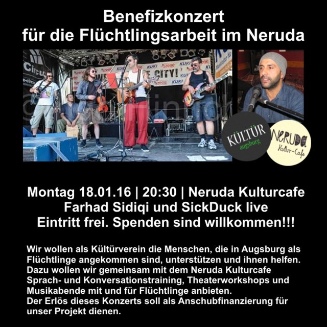 Im Jahr 2010 wurde mit großem Erfolg die Kültürtage Augsburg von Neruda Kulturcafe ins Leben gerufen. Mittlerweile wird jährlich mit den Kültürtagen ein vielgestaltiges Kulturprogramm auf die Beien gestellt. Mit den Kültürtagen bietet der Kültürverein Augsburg allen Kulturschaffenden in der vielkulturellen Stadt, die Möglichkeit zusammen auf der Bühne zu stehen, um gemeinsam das Verbindende und das Anderssein der Kulturen aufzuzeigen. Dieses Jahr geht das Festival in die achte Runde. Exil im Neruda ist eine gemeinsame Aktion des Neruda Kulturcafes und des Kültürvereins Augsburg e.V. Das Team aus Freiwilligen bietet Deutschkurse und künstlerische Aktivitäten für Geflüchtete in Augsburg an (www.exil-im-neruda.de). Die Basis der Aktivitäten ist Fikret Yakyboylu und sein Neruda Kulturcafe. Hier werden weltweit Kontakte gepflegt und ein Begegnungsort für Menschen in Augsburg geschaffen.