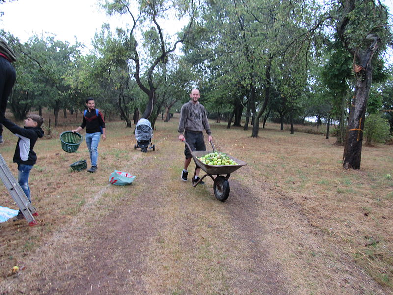 Streuobstwiesen und Obstbäume am Straßenrand gehören zum Landschaftsbild im Südharz und in der Stadt Nordhausen. Wie viel von diesem Obst, von Äpfeln, Birnen, Pflaumen usw., verfault in jedem Jahr? Nur 36 Autostunden von Nordhausen entfernt, in Aleppo, sind ganze Familien vom Hungertod bedroht. Mit diesen Gedanken haben sich die Mitarbeitenden des Familienzentrums intensiv auseinander gesetzt. Gemeinsam mit den von ihnen betreuten Familien ist daraus die Idee entstanden, die nicht genutzten Ressourcen für die Menschen in Aleppo zu verwenden. An mehreren Aktionstagen im September und Oktober 2016 trafen sich Kinder, Jugendliche, Erwachsene und Familien verschiedener Nationalitäten auf den stadteigenen Streuobstwiesen, um gemeinsam in ihrer Freizeit Äpfel zu ernten, zu verarbeiten und zu verkaufen. Der Erlös des Verkaufs ging an Familien in Aleppo.